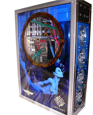 This time, they are not messing around. No, this machine came with a liquid cooled Core i7 965 overclocked to 4GHz, a pair of waterblocked BFG GeForce GTX 280 cards in SLI, almost 2 terabytes of storage, and a whopping 12GB of DDR3-1600 memory configuration, all dressed up in a modded and custom painted case.